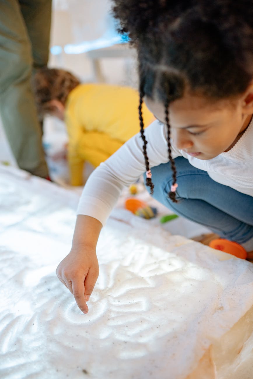 The session might begin with a swing. Knowing that the child loves to spin, the therapist is eager and willing to allow the child to spin in order to meet his vestibular needs. The therapist would then transition to a tactile activity that allows proprioceptive input to the joints and muscles; ie. steamrollers. This is specifically met after the vestibular input to regulate the nervous system after an activating activity. Following, a purposeful obstacle course might be set up to target joints, muscles, and an overall calming pressure on the child’s body. Following this, the child might participate in a sensory bin filled with shaving cream and the child has to locate puzzle pieces in it. Since the child has met their sensory needs, they might be more willing to participate in a texture that they have previously been disinterested in!